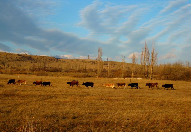 Keywords: cows animals landscape hill sky nature view caucasus outdoors scene season svaneti peak valley landmark meadow wilderness natural cloud europe tree tranquil autumn dawn plant land scenery journey rural morning