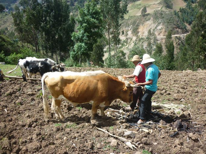 Keywords: cows farm livestock field mount landscape nature mammal animal toro animals veal green stable food horns black and white cows love animals calf animal nature animal husbandry peru
