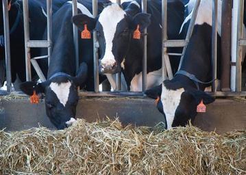 Keywords: cows feeding eating milking stalls farm agriculture livestock countryside rural herd animals dairy milk grass pasture field farmland bovine
