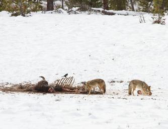 MAKE A MEME View Large Image yellowstone yellowstone national park yellowstonenationalpark wildlife coyote outdoor snow Coyotes on bison carcass in Lower Geyser Basin; Jim Peaco; November 17, 2015; Catalog #20390d; Original #IMG_6486 Coyotes on bison carcass in Lower ...