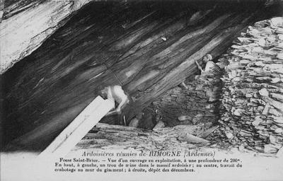 Keywords: Cpaardoisieres.jpg Carte postale des ardoisières de Rimogne own circa 1900 author PD-old Rimogne Postcards of Ardennes department Quarries in Ardennes department Slate mines Former factories in Ardennes department