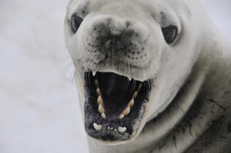 Keywords: crabeater seal seal mammal antarctica nature animal cold snow attack smile