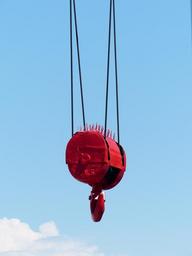 Keywords: crane chain hoist hook red baukran load lifter block and tackle ropes lift