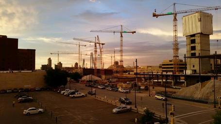 Keywords: cranes construction building site minnesota usa scaffolding machinery city building concrete tower structure development