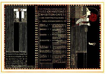 | Keywords: Cranston's exhibition cafe.jpg Miss Cranston's Cafes at the 1911 Glasgow International exhibition scan from The Life and Work of Rennie Mackintosh ISBN 0752514458 other date ca 1911 PD-old-80 PD-1923 1911 works Willow Tearooms Margaret MacDonald Food menus |