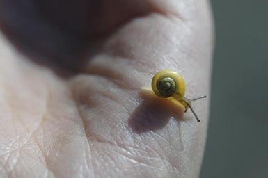 Keywords: crawling snails steinig yellow shell slowly mollusk nature close reptile animal probe gastropoda summer housing snail fauna hand hands protect child naturalist environmental protection careful responsibility carefully keep
