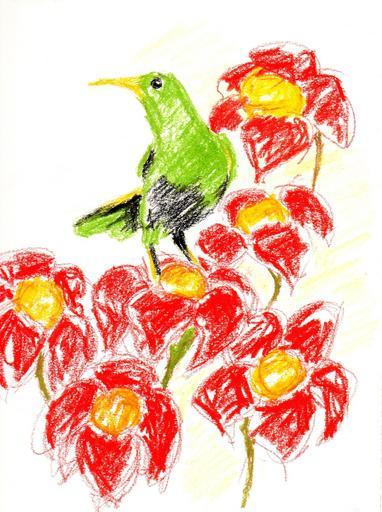 Keywords: crayon kid drawing illustration bird flowers painting art