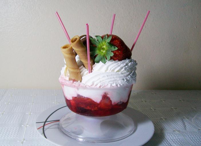 Keywords: cream dessert strawberries sweet