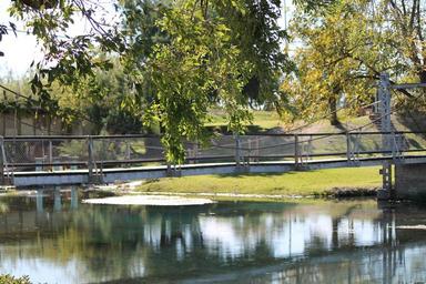 Keywords: creek bridge water nature landscape travel park scenic outdoor trees sky green blue usa del rio san felipe springs blue hole