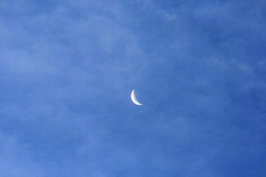 Keywords: crescent moon moon crescent sliver orbital light sky blue bright cloud wispy