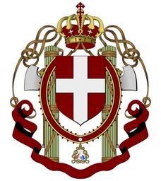 Keywords: crest crown church gentry power coloms banner red white gold lions head angel pigeon maria eternity grand