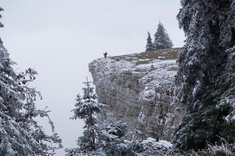 Keywords: creux du van mountains abyss switzerland cliff fog white trees jura winter
