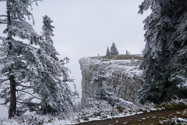 Keywords: creux du van switzerland noiraigue swiss jura stone wall wall mountains jura winter fog white cliffs trees