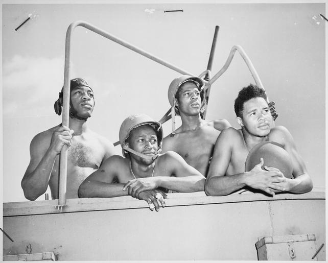 | Keywords: Crew of a 20mm gun aboard a Coast Guard fighting ship are hanging up some new records for speed and accuracy. - NARA - 513190.tif crew of a 20mm gun aboard a Coast Guard fighting ship are hanging up some new records for speed and accuracy Left to right Daniel Moore Walter L Bottoms William Wheeler and Rudolph C Grimes all Steward's Mates second class ca 1941 - ca 1945 « L'équipage d'un canon de 20mm à bord d'un navire Garde-côte et de combat qui sont en train de battre de nouveaux records de vitesse et de précision De gauche à droite Daniel Moore Walter L Bottoms William Wheeler et Rudolph C Grimes tous soldats de deuxième classe vers 1941-1945 513190 Local identifier 26-G-3151 Department of Transportation U S Coast Guard Office of Public and International Affairs 04/01/1967 - 1985 Still Picture Records Section Special Media Archives Services Division NWCS-S National Archives at College Park 8601 Adelphi Road College Park MD 20740-6001 circa 1941 1945 Record group Record Group 26 Records of the U S Coast Guard 1785 - 2005 Record group ARC 355 Activities Facilities and Personalities compiled 1886 - 1967 Series ARC 513164 Variant control numbers NAIL Control Number NWDNS-26-G-3151<br /> Select List Identifier AFRO/AM LIST 118 General notes Scope and content File unit File unit ARC yes <gallery> File Crew_of_a_20mm_gun_aboard_a_Coast_Guard_fighting_ship_are_hanging_up_some_new_records_for_speed_and_accuracy _-_NARA_-_513190 tif tif File Crew_of_a_20mm_gun_aboard_a_Coast_Guard_fighting_ship_are_hanging_up_some_new_records_for_speed_and_accuracy _-_NARA_-_513190 jpg jpg </gallery> NARA-cooperation PD-USGov People of the United States Coast Guard NARA TIF images with categorized JPGs |