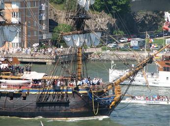 | Keywords: Crew of Gotheborg waving.jpg The crew of East Indiaman Götheborg waving at welcoming spectators at Lindholmen when coming home from China The steamer Bohuslän and one of the Paddan tourist boats are also seen Own 2007-06-09 Rolf Broberg Göteborg harbour Götheborg ship 2002 |