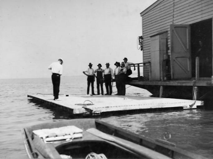 | Keywords: blackandwhite monochrome outdoor black and white Samuel Pierpont Langley (1834-1906) attempted to make the first heavier than air aircraft. His models flew but his attempts on October 7 and December 8, 1903 at flight failed. To avoid fatal accidents he conducted his experiments on the Potomac River. Charles Manly piloted the aircraft. In 1914 the Langley aircraft was modified and flown by Glenn Curtiss. GEO LOCAL: Widewater Virginia Date: 1903 October Full Description: Crew of the Langley houseboat on a barge in the Potomac River Samuel Pierpont Langley (1834-1906) attempted to make the first heavier than air aircraft. His models flew but his attempts on October 7 and December 8, 1903 at flight failed. To avoid fatal accidents he conducted his experiments on the Potomac River. Charles Manly piloted the aircraft. In 1914 the Langley aircraft was modified and flown by Glenn Curtiss. GEO LOCAL: Widewater Virginia Date: 1903 October Full Description: Crew of the Langley houseboat on a barge in the Potomac River |