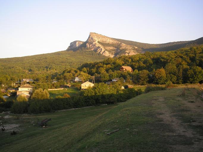 Keywords: crimea landscape mountains scenic sky clouds nature outside forest trees vista summer spring country countryside rural woods buildings village