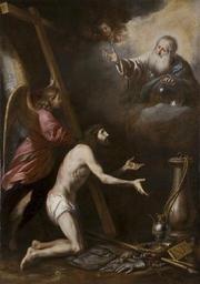| Keywords: Cristo ofreciendo el mundo al Padre Eterno, del círculo de Antonio del Castillo (Museo de Bellas Artes de Córdoba).jpg La obra representa a Jesucristo ofreciendo el mundo sometido por él gracias a su muerte y resurrección a Dios Padre Segunda mitad del siglo XVII oil on canvas Size cm 180 255 Institution Museo de Bellas Artes Córdoba http //ceres mcu es/pages/Main accession number CE1829P http //ceres mcu es/pages/Main PD-old-100 Paintings of Jesus Christ in Spain 17th-century paintings of Jesus Christ Paintings of God the Father in Spain 17th-century paintings of God the Father Paintings by Antonio del Castillo in the Museum of Fine Arts of Córdoba Religious paintings in the Museum of Fine Arts of Córdoba 17th-century paintings in the Museum of Fine Arts of Córdoba Circle of Antonio del Castillo |