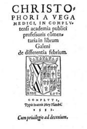 | Keywords: Cristóbal de Vega (1553) Comentaria in librum Galeni de differentia febrium.png Cristóbal de Vega en Alcalá de Henares en 1553 1553 http //alfama sim ucm es/dioscorides/consulta_libro asp ref X533697254 idioma 0 Christophori a Vega Comentaria in librum Galeni de differentia febrium Compluti typis Ioannis Mey Flandri; 1553 Cristóbal de Vega PD-old PD-old-100 16th-century books 1553 in Spain Cristóbal de Vega Medical books from Spain Books published in Alcalá de Henares University of Alcalá History of Alcalá de Henares Frontispieces from Spain Books in Latin Files by User Raimundo Pastor portadas |