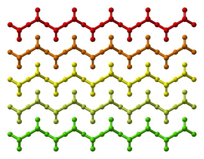 | Keywords: CrO3-from-xtal-1970-bulk-chains-distinguished-by-colour-3D-balls.png en Ball-and-stick model of part of the crystal structure of chromium trioxide CrO<sub>3</sub> Colour code Atoms are not coloured according to which element they are as is usually the case Instead different colours correspond to different CrO<sub>3</sub> <sub>n</sub> chains Structure by X-ray crystallography from http //dx doi org/10 1107/S0567740870002182 Acta Cryst B 1970 26 222-226 Model manipulated in http //www crystalmaker com/ CrystalMaker 8 3 Image generated in http //accelrys com/products/discovery-studio/visualization/discovery-studio-visualizer html Accelrys DS Visualizer Own 2011-03-21 Ben Mills Benjah-bmm27 Images by Ben Mills Chromium trioxide |