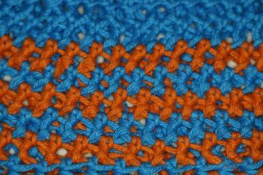 Keywords: crochet hand labor hobby orange blue striped structure texture background mesh häkelmaschen chopsticks close