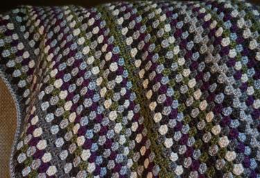 Keywords: crocheted afghan yarn crochet afghan fiber arts purple green traditional fiber