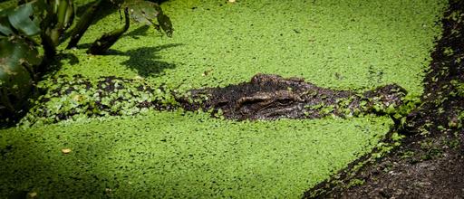 Keywords: crocodile camouflage green water plants reptile