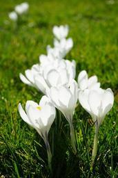 Keywords: crocus flowers plant spring frühlingsblüher white schwertliliengewaechs iridaceae ornamental plant bright colorful color shine through light floral in row and member colourful bloom series