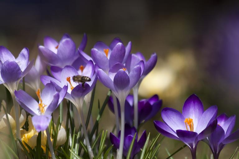 Keywords: crocus schwertliliengewaechs spring crocus flowers blossom bloom flower flora bloom nature violet bee sprinkle spring lenz