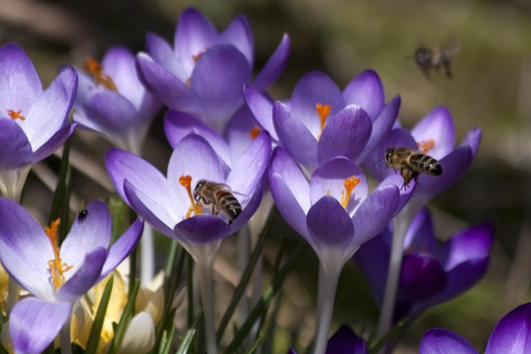 Keywords: crocus schwertliliengewaechs spring crocus flowers blossom bloom flower flora bloom nature violet bees sprinkle hum spring lenz