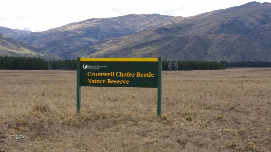 Keywords: Cromwell chafer beetle reserve sign.jpg en The Department of Conservation Cromwell chafer beetle sign 2015-10-01 16 51 27 own Siobhan Leachman other versions cc-zero Signs in New Zealand Cromwell New Zealand Conservation in New Zealand
