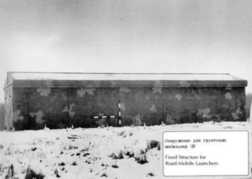 | Keywords: Crona for Topol ICBM.gif ru Ук ытие с аздвижной к ышей типа К она для пусковых установок ПГРК 15П158 Тополь Фото из п иложения к мемо андуму о догово ённости об установлении исходных данных между СССР и США о сок ащении и ог аничении ст атегических наступательных воо ужений» С В-1 en Shelter of Crown type with a sliding roof for launchers of 15P158 Topol missile system Foto from MOU of START treaty 1991 1991 http //www state gov/www/global/arms/starthtm/image/rfphotos/rs12mss25fs gif author custom PD-USGov Uploaded with UploadWizard RT-2PM Topol |