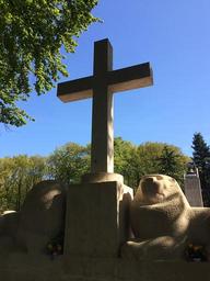 Keywords: cross commemorate military cemetery blue sky lions monument