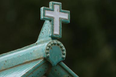 Keywords: cross sound glaze turquoise white weel glazed cemetery ceramic