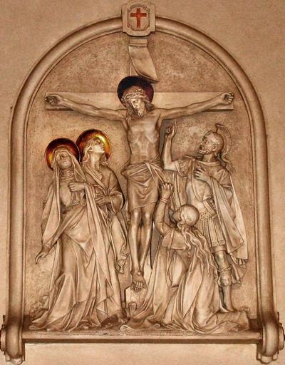 Keywords: cross station of the cross crucifixion church religion christianity stone carving