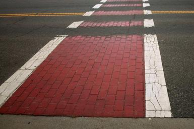 Keywords: crosswalk path road street city urban asphalt way cross line pavement crossing town brick