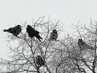 Keywords: crow winter wintry cold winter mood frost trees branches iced nature