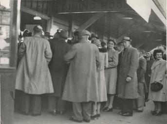 | Keywords: archives state records nsw staterecordsnsw newsouthwales blackandwhite coffs harbour coffsharbour people mid north coast midnorthcoast regional refreshment room refreshmentroom tea room tearoom cafe coats hats fashion clothing women indoor black and white Coffs Harbour Railway Refreshment Room - crowd entering dining room Dated: 09/07/1947 Digital ID: 17420_a014_a014000041 Rights: www.records.nsw.gov.au/about-us/rights-and-permissions We'd love to hear from you if you use our photos. Many other photos in our collection are available to view and browse on our website using Photo Investigator. Coffs Harbour Railway Refreshment Room - crowd entering dining room Dated: 09/07/1947 Digital ID: 17420_a014_a014000041 Rights: www.records.nsw.gov.au/about-us/rights-and-permissions We'd love to hear from you if you use our photos. Many other photos in our collection are available to view and browse on our website using Photo Investigator. |
