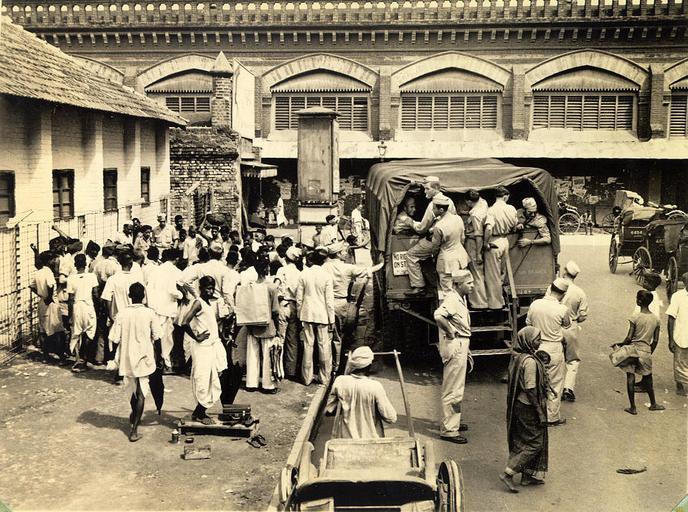 | Keywords: Crowd gathered around a sidewalk performer at a bus stop in Calcutta in 1945.jpg Crowd gathers round a sidewalk performer at bus stop while GI's take temporary advantage of an overhead view from steps of a camp bus This is a good spost for hawkers beggars shoe shine boys showmen to work on the bankroll of the 'rich American soldier' The South Asia Section of the Van Pelt Library University of Pennsylvania recently acquired from a bookdealer a photograph album consisting of 60 photographs of Calcutta taken most likely between 1945-1946 The photographer Mr Clyde Waddell also provided the interesting glosses accompanying each photograph Several attested copies of this work has emerged including one with a 'title page' held by the Southeastern Louisiana University in Hammond Louisiana Mr Waddell was a military photographer Many of his captions sound like annotations that would be found in a typical military magazine The album begins with several general long shots of Calcutta and ends with a picture of dhobi-s washermen washing clothes The text accompanying the last photograph also sounds as if the author intended to finish with that picture of one of the great mysteries of India The annotations have been included because of their intrinsic interest not only to the photographs but to a 'typical' American impression of India at this time 1945 http //www library upenn edu/collections/sasia/calcutta1947/ Clyde Waddell other versions PD-USGov Van Pelt Library University of Pennsylvania - Clyde Waddell Calcutta 1940's photos Uploaded with UploadWizard Street performers in India |