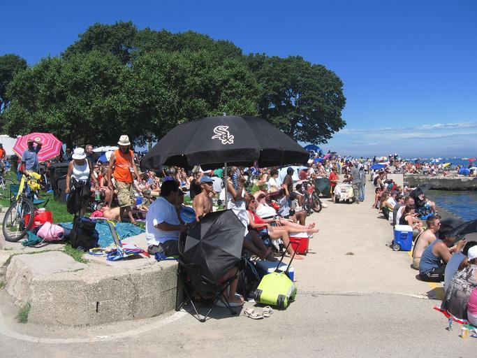 Keywords: crowd lake urban shore illinois americans america