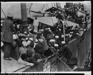 | Keywords: blackandwhite monochrome black and white Crowded deck of Komagata Maru VPL Accession Number: 6232 Date: 1914 Photographer/Studio: Frank, Leonard Content: May 23 - July 23, 1914. Sikhs aboard Komagata Maru - Gurdit Singh - left fore Note on 8X10cm copy print: 'VANCOUVER ON THE EVE OF THE GREAT WAR. The rejected British Subjects - Sikhs on board the Komagata Maru July 1914. Leonard Frank photograph.' Topic: East Indians, East Indian Canadians, Sikhs, Sikh Canadians, Immigrants, Komagata Maru Incident, 1914, Race discrimination Organization: Komagata Maru (Ship) Location: British Columbia - Vancouver Crowded deck of Komagata Maru VPL Accession Number: 6232 Date: 1914 Photographer/Studio: Frank, Leonard Content: May 23 - July 23, 1914. Sikhs aboard Komagata Maru - Gurdit Singh - left fore Note on 8X10cm copy print: 'VANCOUVER ON THE EVE OF THE GREAT WAR. The rejected British Subjects - Sikhs on board the Komagata Maru July 1914. Leonard Frank photograph.' Topic: East Indians, East Indian Canadians, Sikhs, Sikh Canadians, Immigrants, Komagata Maru Incident, 1914, Race discrimination Organization: Komagata Maru (Ship) Location: British Columbia - Vancouver |