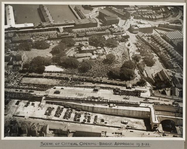 Keywords: national library of australia nationallibraryofaustralia xmlns:dc=http://purl.org/dc/elements/1.1/ xmlns:dc=httppurlorgdcelements11 dc:identifier=http://nla.gov.au/nla.pic-vn4515412 dc:identifier=httpnlagovaunlapicvn4515412 monochrome photo border outdoor Searle, E. W. (Edward William) Part of the collection: Official air views of the opening celebrations of the Sydney Harbour Bridge, 19 March, 1932.; Title devised by cataloguer based on inscription below photograph.; Inscriptions: "Scene of Official Opening - Bridge approach, 19-3-1932"--In ink below photograph; "303"--Lower right.; Condition: Slight scratches.; Also available in an electronic version via the Internet at: nla.gov.au/nla.pic-vn4515412. Persistent URL nla.gov.au/nla.pic-vn4515412 Searle, E. W. (Edward William) Part of the collection: Official air views of the opening celebrations of the Sydney Harbour Bridge, 19 March, 1932.; Title devised by cataloguer based on inscription below photograph.; Inscriptions: "Scene of Official Opening - Bridge approach, 19-3-1932"--In ink below photograph; "303"--Lower right.; Condition: Slight scratches.; Also available in an electronic version via the Internet at: nla.gov.au/nla.pic-vn4515412. Persistent URL nla.gov.au/nla.pic-vn4515412