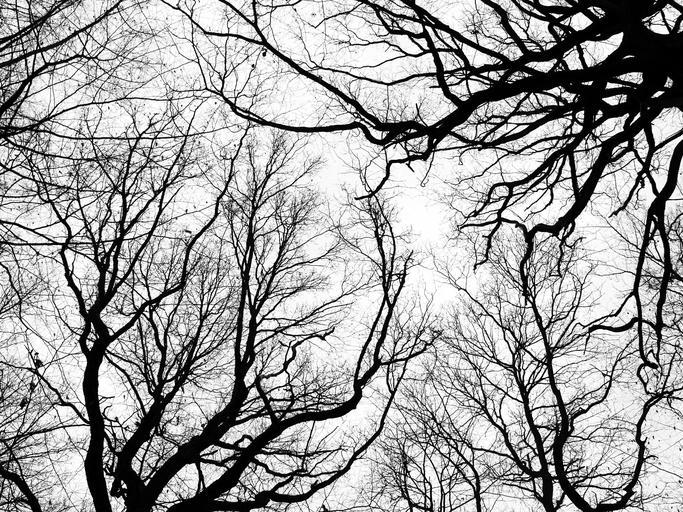 Keywords: crown winter cold bare tree aesthetic branches kahl forest wintry trees road frost plane bare branches view below crotch
