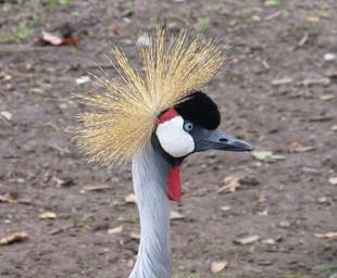 Keywords: crowned crane close up head eyes beak bird red white black wildlife nature africa outdoors portrait feathers enclosure zoo