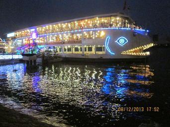 Keywords: 'Cruise Ship' in Harbour..JPG en A beautiful JAWS designed tourist ship in Ho Chi Minh Harbour own Rudolph A Furtado Monday 9-12-2013 Night in Ho Chi Minh City Taken with Canon PowerShot A810 Cc-zero