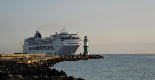 Keywords: cruise ship warnemünde mole lighthouse ship travel ship passenger ship baltic sea shipping cruise sea port phased out tourism