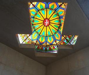 Keywords: cruz stained glass window colors symmetry decoration temple worship christianity glasses corner marble circle