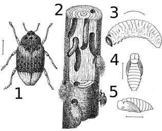 | Keywords: Cryptorhynchus lapathi line art 1897.svg en Cryptorhynchus lapathi a Willow pest original caption 1 Beetle 2 Section of infested wood 3 Larva 4 Pupa dorsal view 5 Pupa side view Library of Congress Collection Garden Forest 1897 PD-old Coleoptera developmental stages SVG insects Cryptorhynchus lapathi Curculionidae larva |
