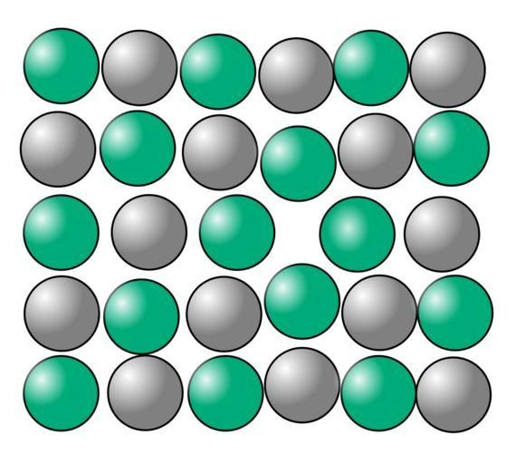 Keywords: Cryst struct deficit.svg en defect of crystal structure - deficit pl zdefektowana sieć krystaliczna deficyt węzłeł nieobsadzony own Joanna Kośmider 2011-03-15 Cc-zero Crystal structures of metals Point defects in crystals