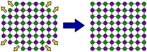 | Keywords: Crystal facet formation.svg en Schematic illustration of why crystals have smooth faces The rough edges have a lot of dangling bonds which new atoms can easily bond to as the crystal grows The smooth planes with low surface energy and usually low Miller index have fewer dangling bonds and new atoms cannot easily attach so these planes grow outwards more slowly Eventually you end up with the whole surface being smooth planes This cartoon is supposed to represent of cross-section of halite Purple circles are sodium ions green circles are chloride ions Image is inspired by a similar one at http //www its caltech edu/~atomic/snowcrystals/faceting/faceting htm 2011-11-22 own Sbyrnes321 cc-zero Uploaded with UploadWizard Crystal structure of sodium chloride Crystallization Checkered SVG physics 8x9 arrays |